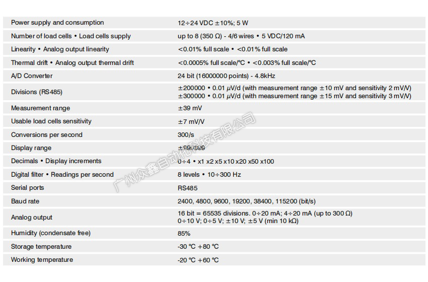 產(chǎn)品類型:模擬重量變送器 - RS485