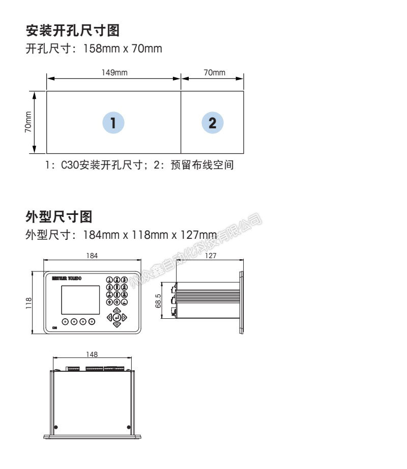 四、梅特勒托利多 C30稱重顯示控制器產(chǎn)品尺寸