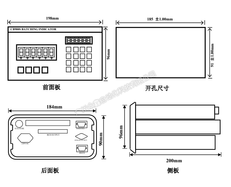 三、CB900S稱重控制器產(chǎn)品尺寸