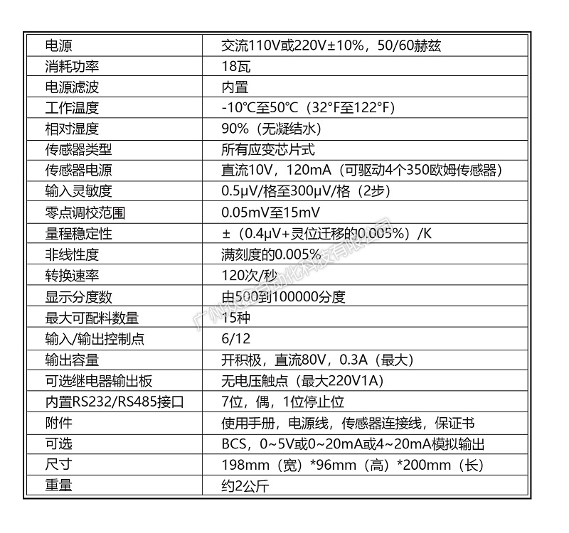 二、CB900S稱重控制器產(chǎn)品參數(shù)