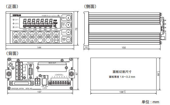 日本unipulse尤尼帕斯稱重儀表外觀尺寸