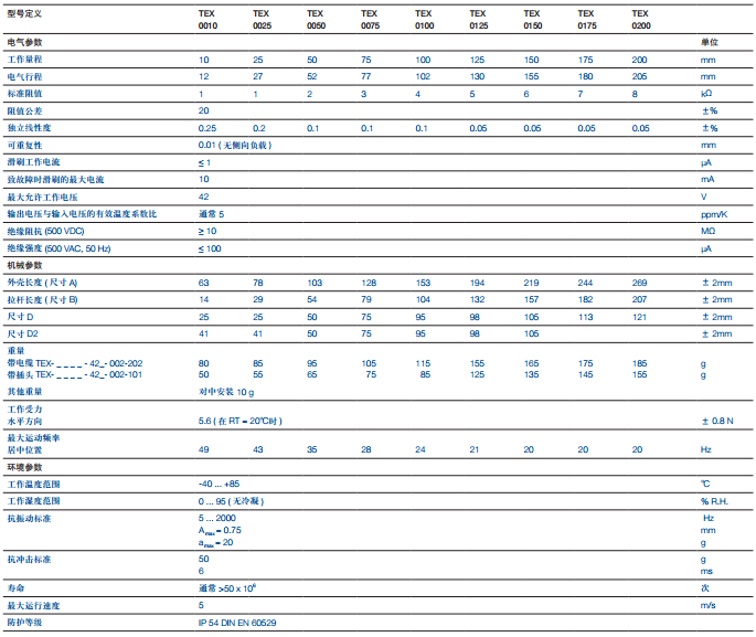 德國NOVOTECHNIK位移傳感器TEX系列產(chǎn)品參數(shù):