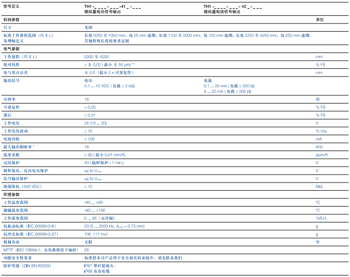 德國NOVOTECHNIK位移傳感器TH1系列產(chǎn)品參數(shù):