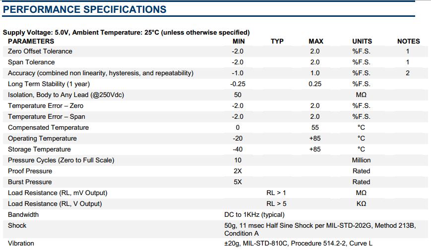 MSP340系列美國(guó)MEAS壓力傳感器指標(biāo)